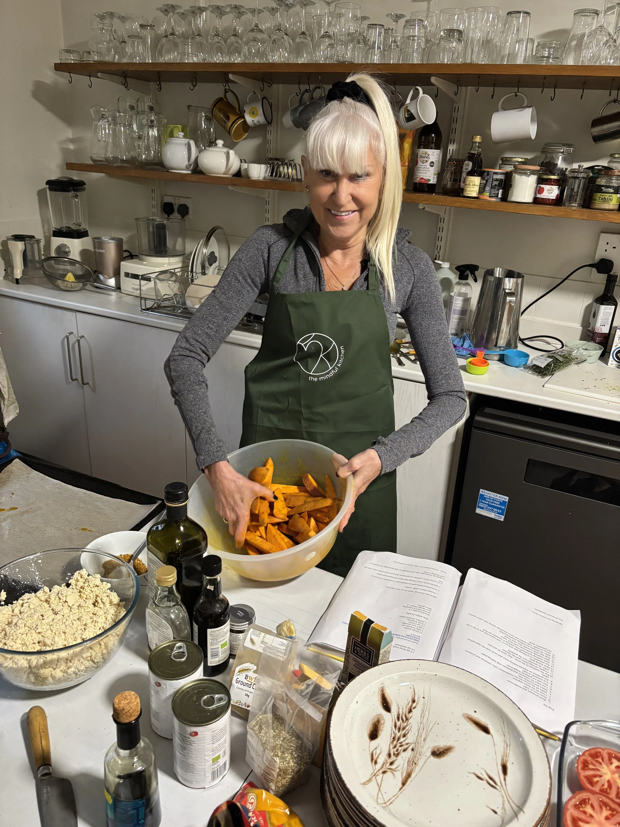 “I stepped into The Mindful Kitchen training with a very practical intention: I wanted to feel more confident cooking plant-based meals for multiple. I was looking for hands-on skills, structure, and self- confidence in the kitchen.